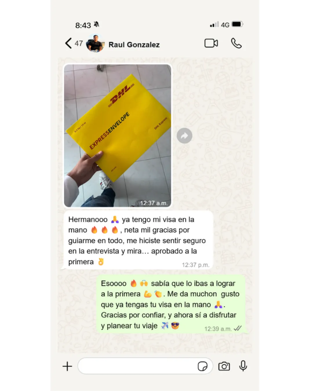 "Mi esposa y yo creíamos que el proceso sería complicado, pero con ellos fue todo lo contrario. Nos llenaron todo correctamente, nos prepararon muy bien y nunca hubo errores. La entrevista duró minutos y nos aprobaron a ambos sin problemas. Fue un trámite rápido, claro y sin estrés. Totalmente recomendados.